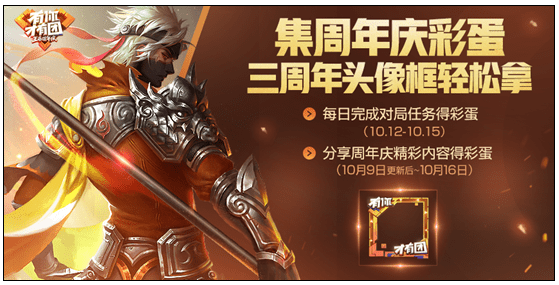 活动期间总产出7个周年庆彩蛋,收集3个可兑换3周年纪念头像框。