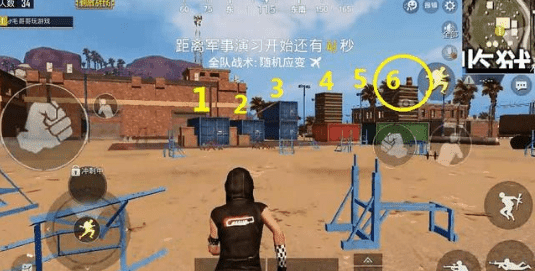 在《刺激战场》游戏沙漠地图出生点“监狱”广场上,有几个惹眼的大集装箱,白色游骑兵衣服就在我标记的6号集装箱顶上,上去的顺序依次是从1到6,动作一定要紧凑而小心,否则很容易掉下来。