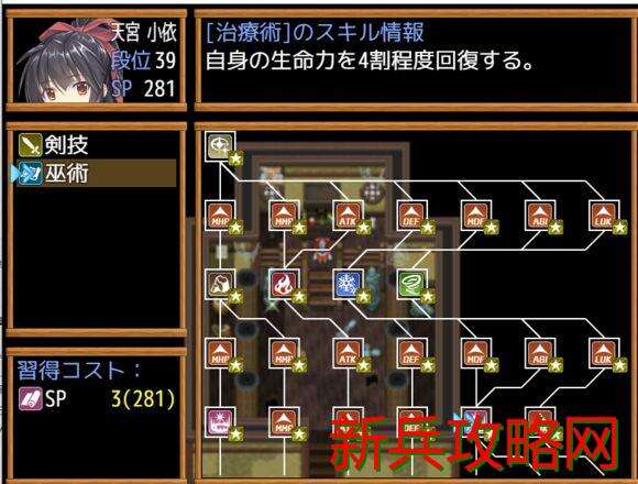 优先提升能力:建议先走法术系,武器换成符咒。法术系的技能树可以在单个能力上很快攀升到底端。优先提升法术攻击ATK,防御DEF,魔防MDF,直接攀升到底。其次是血MMP,蓝MHP。技能优先出治愈术