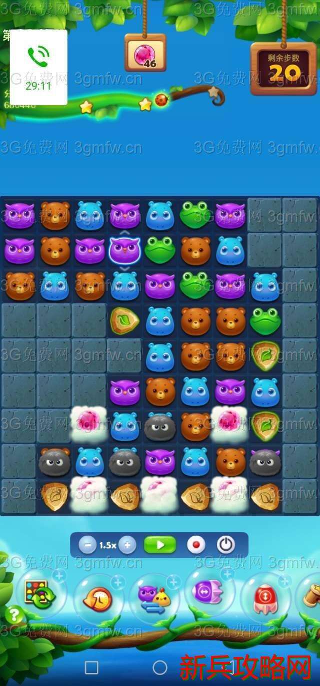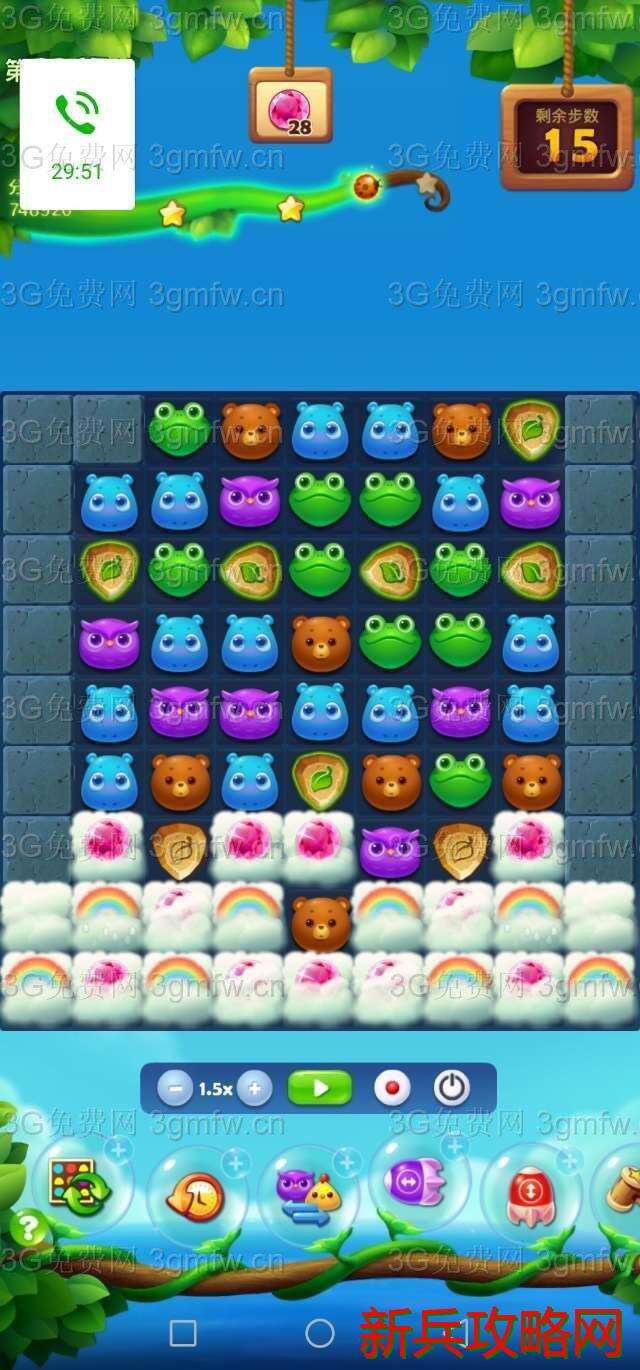 买上前置+3,开始三消么么狐,闪电鸟一触即发,几个闪电清屏向下。第二章魔法石加魔法炮,双管齐下清屏向下。魔法石不用依依激活。可以从缺口处向下一边拉图,一边被激活。第三章魔法石继续向下拉图。最后横向特效放大招。