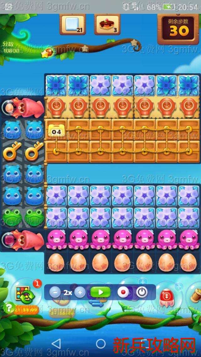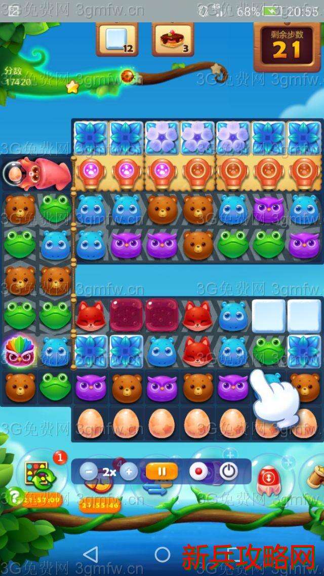 5.本关难度较大,建议开局+3,利用54特效组合打掉上面的冰块,完成蛋糕收集。
