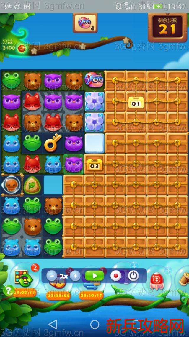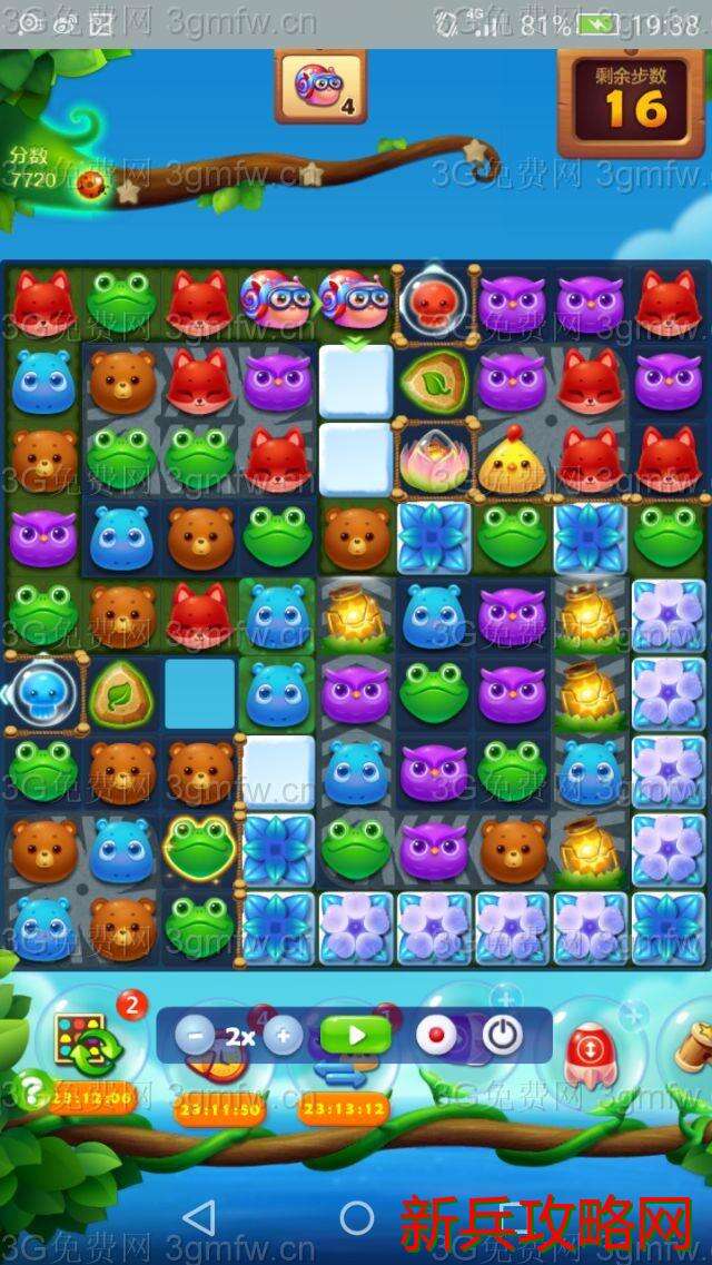 4.主打魔法石和莲花,打 爆莲花,出现太阳瓶,运用太阳瓶清楚雪块,让蜗牛开路,若有54组合特效可迅速完成。