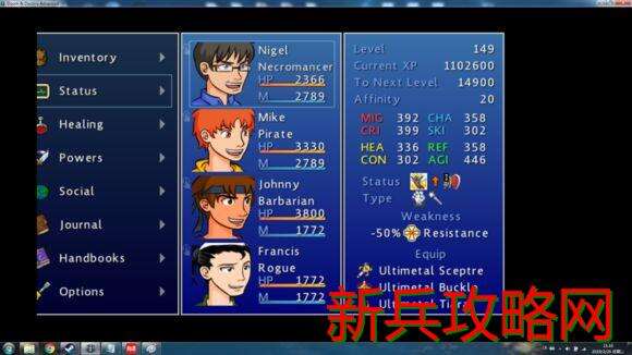 Skill技巧 决定战斗中被动技能的触发率和战斗中使用的物品的效果多少及战斗后回复的法力多少