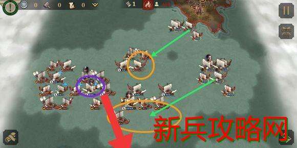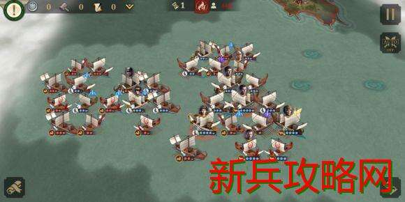 海战打法无非是夹击,然后血高先打掉一编,敌军士气双降,再消灭。对付海将时,直接六围打混乱