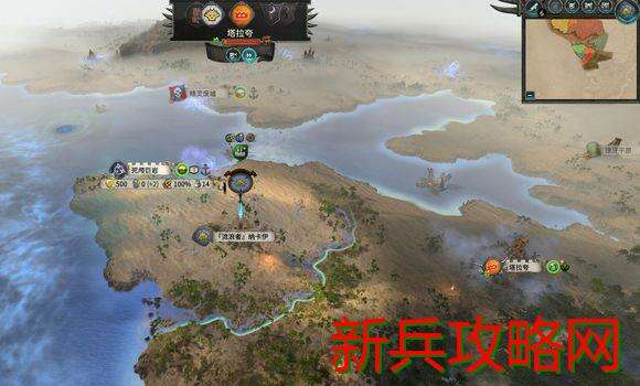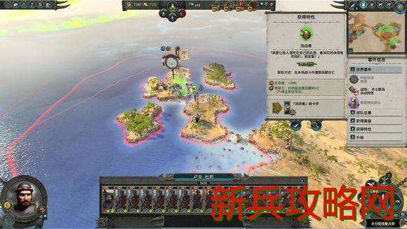 在抵达非洲前,升级2级城,不要募兵,路途中有空子就钻下,优先点上移动距离,下海前解散全部队只保留事务管,航海时不要进入海盗攻击范围。占领桥头堡后,主城升3级招募巨蜥,刷刷兽人。