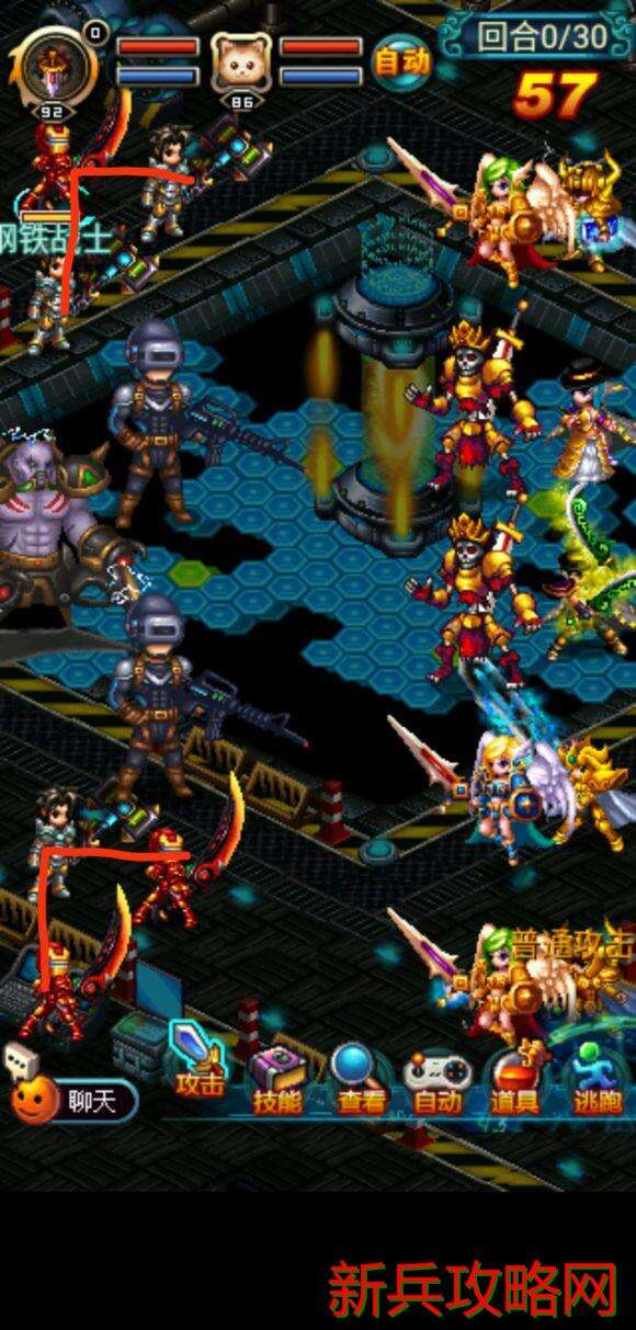 打法:第一回合贤者看戏,火炮和空手破防下面2个钢铁侠,长柄扣合成兽蓝,出手号给4,5楼套幻影,2个骷髅分别给带骑士的号套亡者召唤;第二,三回合出手号给123楼套亡者之愿,其他号和第一回合一致;第四回合开始输出下面2个钢铁侠,等下面2个钢铁侠快死了,空手提前破防上面的钢铁侠,同时看看对面物免蓝量状态;后面具体回合忘了,钢铁侠打死打合成兽,对面哪里先被扣完蓝就打破防,同时贤者输出跟上。
