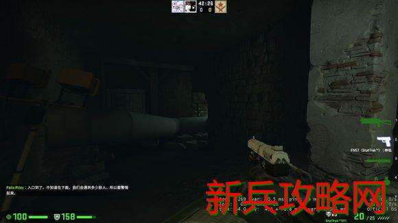 从这个洞蹲着进去,下楼,注意会有一把P90蹲着,先清他再清喷子