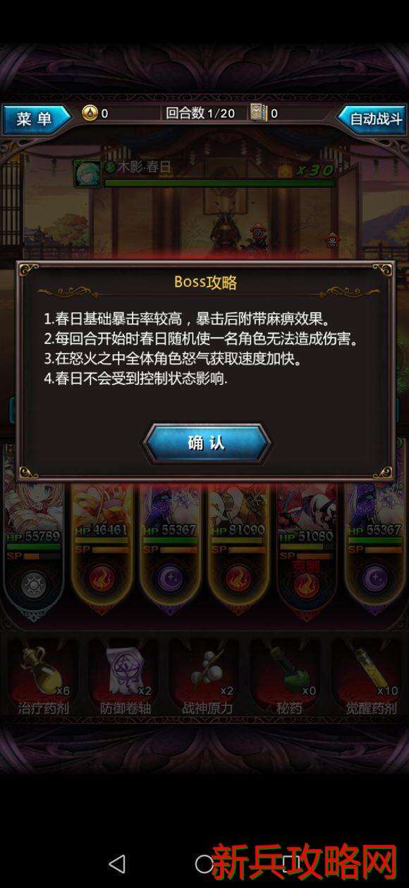 Boss的输出不高,借个炮娘很好打。但需要注意的是,无法造成伤害的debuff持续时间不止三回合(大概4或5回合,没特意试),且没法用万能药剂解,所以本关有点偏速攻。
