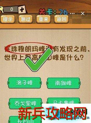 神脑洞游戏第76关《在珠穆朗玛峰没有发现之前世界上最高的山峰是什么》答案攻略
