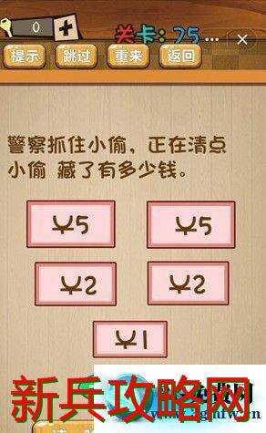 神脑洞游戏第75关《警察抓住小偷正在清点小偷藏了有多少钱》答案攻略