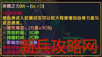 杀戮的爆发,坦度,回复的核心来源。 30%的力量加成不可小觑,能大量增加自己的血量和输出。