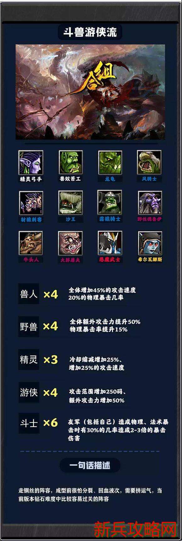 上图为四游侠四兽人一野兽,在野兽、兽人中选择一种羁绊,七人口即可成型