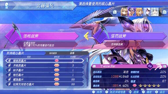 之后就是异刃的武器强化,这里需要用晶片。前期么有好的晶片,就看哪个属性高就用哪个就可以了。
