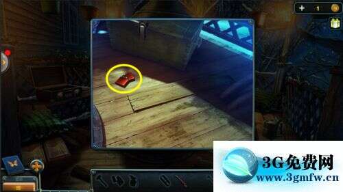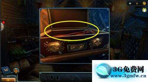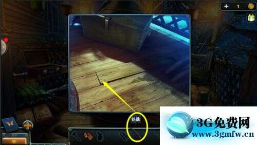 再点击左边椅子上的箱子,用【两个锁片】打开箱子,拿到【铁撬】。