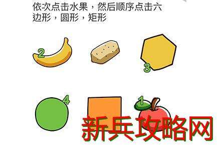 问题:依次点击水果然后顺序点击六边形圆形矩形?