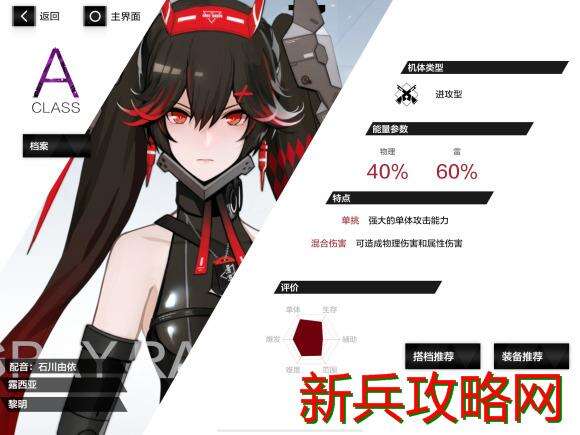 1. 露西亚-黎明——要说到a卡那肯定首先就是我们的a级战神黎明了。黎明作为主角机体,虽然下面空荡荡的,但依然难掩她的强力。作为a卡的黎明有着s卡一样的伤害和机制,虽然综合来看同级略微逊色于烬燃和乱数,但胜在作为a卡黎明的养成成本非常低,所以又被称之为低氪之友。