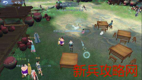 解决方式:去图中位置找酒保点我要对饮 组队去喝酒比对方快方可完成