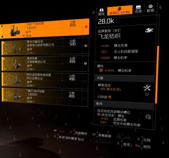 选择优先级:1.飞龙品牌 2.天赋精伤且属性是暴击。