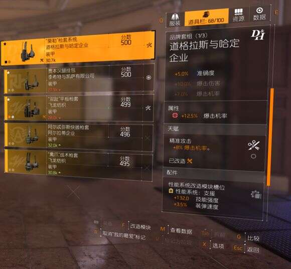 属性和天赋的要求,两个牌子一模一样,都是暴击+暴击or武器伤,为什么不要精伤?因为面具,胸甲,背包,护膝这四个位置都可以洗精伤,但不能洗其它攻击属性,所以枪套的一条基础攻击天赋很重要。