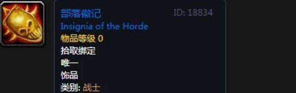 首先先要和小伙伴们讲解一下,这个徽记其实也就是解除控制的一个饰品,如上图所示的一个物品,但是联盟和部落各自的换取地点各有不同,所以这边分开做介绍。