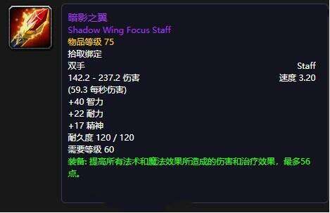 这是一件史诗级别的武器,其能够对装备者增加40点智力、22点耐力、17点精神力。
