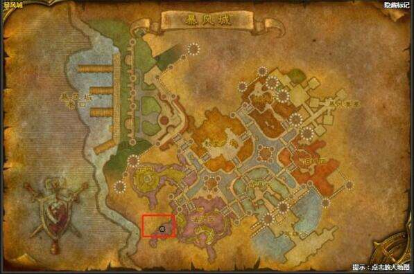在暴风城法师区,如上图所示之中,坐标39.1,84.4的位置。