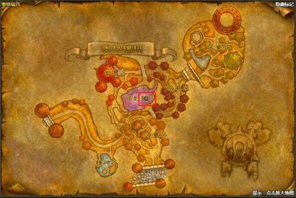 在奥格瑞玛暗影裂口,如上图所示之中,坐标49.4,50.0的位置。