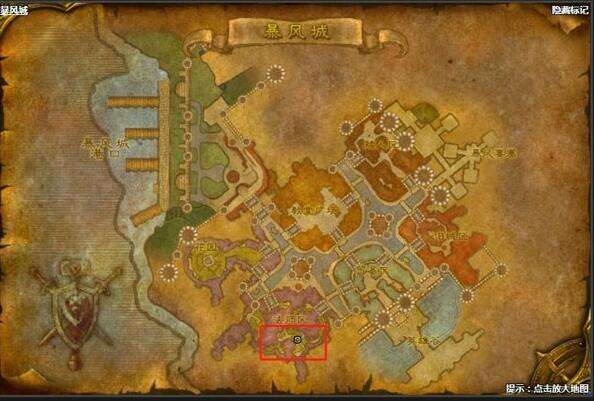 1、暴风城传送门训练师位于,暴风城中法师区的位置,如上图之中所示,具体坐标为50.5,85.9,名字叫拉瑞麦尼普尔度传送门训练师。
