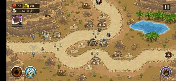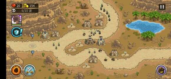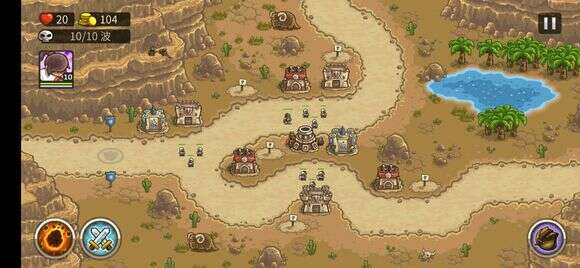 战役 这关有些麻烦狼比较多,面具人很耐打,需要有法师塔,我是先把中间的炮塔升一级方便打浪,然后再慢慢升其他的。援兵放在下面,拦住狼,英雄这时应该还是沙王,弄个沙人的技能拦下兵和狼,后面一定要建个兵营,狼太多拦不住。面具人出现后升下兵营和法师塔,不然打不过