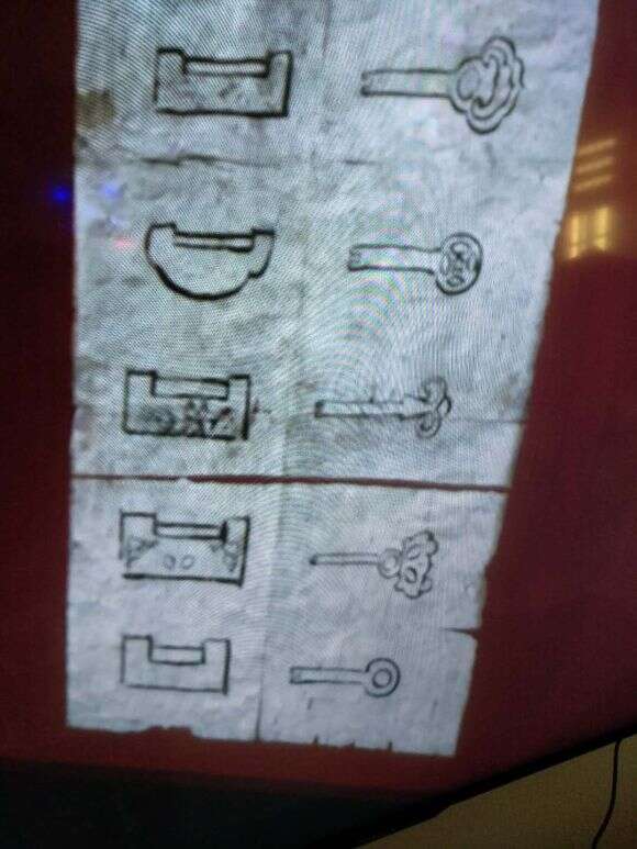 3、过走廊走到尽头(反方向的藏宝室不到最后是打不开的),进入门客柳先生的门客房,桌上可以拿到地图,收集几个小人后,挂在两边,让两边头和脚的数量一致达到平衡以后就可以了,很容易的,平衡后可以取得钥匙