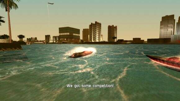 还记得上一个D点任务中抢来的快艇吗?它又出现了,首先要考验你对船只的驾驶技术,与那些人赛船,至少不能让那些人比你早到粉点。