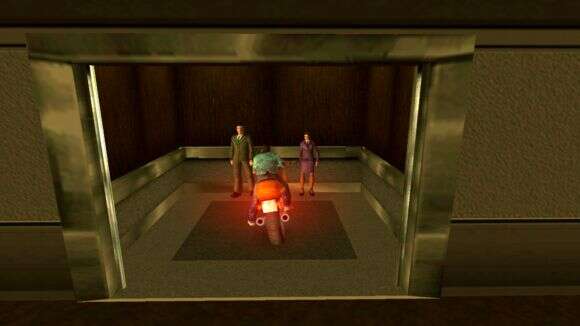 电梯把你送到预定楼层,这里是VC当中凭借正常手段能够到达的最高的地方,直升机都上不来。现在,你要从前面那块玻璃撞出去(小心中间那一根柱子),然后完成一次特技跳跃。
