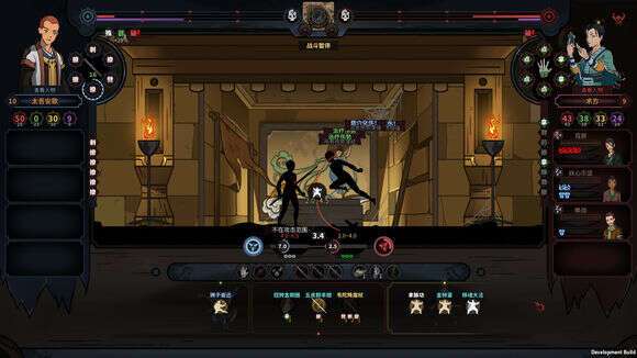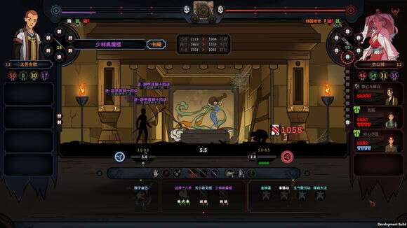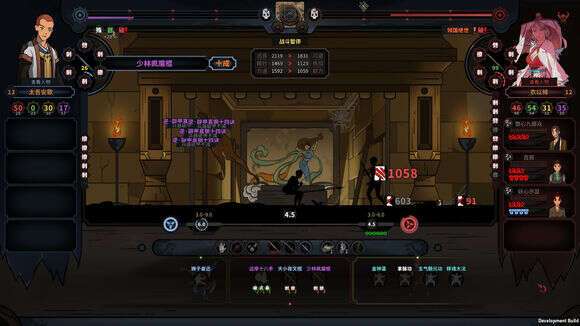 这里换成了四品疯魔棍输出,基础迅疾命中高,靠吃药、挂件和武器加成保证功法三项命中都达标。开场奋迅之后,衣以候会站6.7弹琴,但是ai是不会预读移动的,在50点轻灵真气的支持下,跳两到三次就能用木棍打出一波连击。然后胆小的妹子就会主动切剑近身。