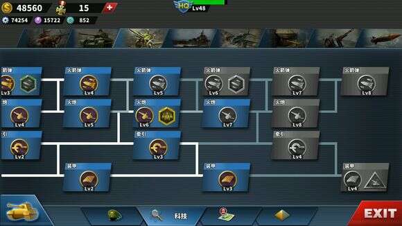 坦克科技尽量高一点,其他科技随意。科技不够的多上将。