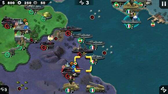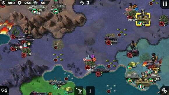 第三回合,上路古帅抵近盛田一夫城输出,尽量打出谣言,隆帅登陆。左路超炮登陆输出城市,梅塞向左走一点避开海军火力,巡洋舰打城防。