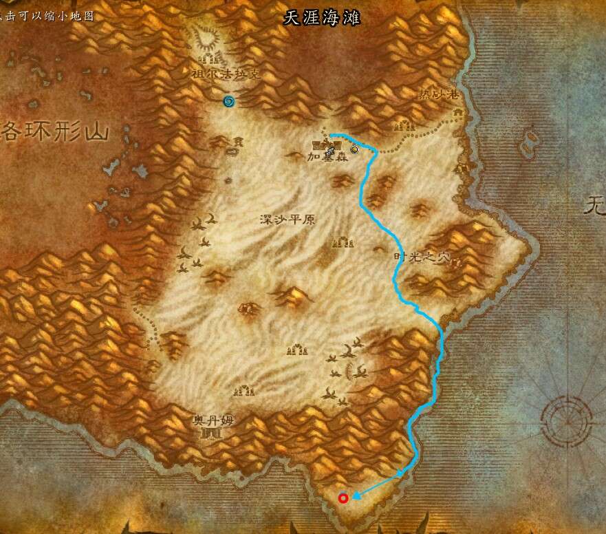 热砂港南边,家的南边。家指的就是南海海盗的老巢,在时光之穴的西边。