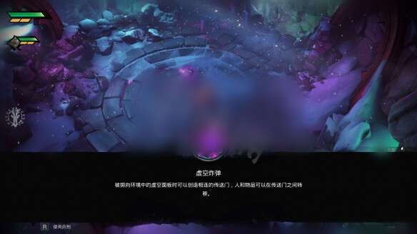 来到安全区域后会发现新的道具——虚空炸弹,对准有紫色符文标记的地方按E丢出可以制造传送门,角色和物品都可以通过传送门传送。
