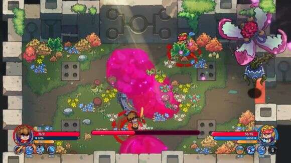 食人花有三种攻击方式:冲撞、召唤地刺、发射毒药炮弹。冲撞的方式和冲冲差不多,都是直线前进的,当食人花召唤地刺时先会举起藤曼,再往地板上重重拍一下,当它抬手时我们就需要远离它了。毒药炮弹的命中率比较低,也好躲,最高同时发射两发。但要注意的是,不要让炮弹挡住去路,影响走位,尽量靠墙边站。