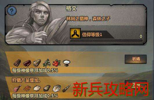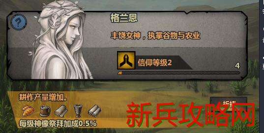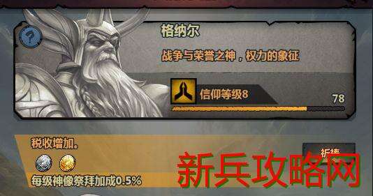 目前我的神庙等级为6级可以建造8个神像,我只知道这么多也许以后还有其他的目前来看着应该是该等级建造的全部了。大家注意到信仰等级没有,我们接下来要说的就和这个有关,信仰等级是你通过祈祷累计经验升级而来。哪信仰等级有什么用呢如下图:
