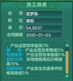 然后是挑选掌柜,第一次挑掌柜,我建议可以先刷个+10%的先用着,也就是这种