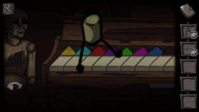 这里,我们需要带着斧头去找舞台上的那个木偶,之前玩家老爷们应该发现了那个木偶眼睛会动,我们需要用斧头打开木偶,得到一个电子元件