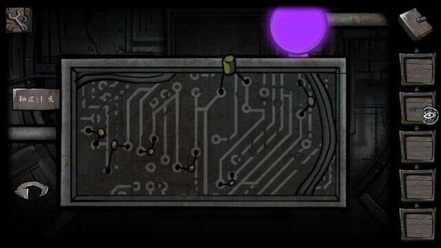 这里我们继续回到右边,去点那个锁,这时我们不会再触发屠夫,点开锁之后,我们需要把电子元件装回到电路板上,之后玩家老爷们点电子元件将正确的通电路连对,灯就会亮