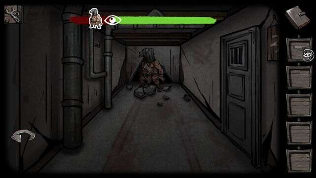 来到地下室之后,我们会来到一个走廊,顺着走廊一直走下去之后,我们会在点第三个走廊里的墙壁时触发一个屠夫的躲藏战,然而很多玩家老爷发现,这个地方并没有柜子,而且一开始,我们就已经被屠夫发现了(已经在红色线里了),这里我们就得快速点第三个走廊里右边的铁门躲进去