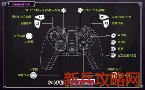下图是小鸡G4手柄按键布局和默认功能,熟悉主机游戏的玩家立刻就会发现,G4采用了传统的手柄布局,而且没有任何按键的删减。这种手柄布局是已经被验证的科学布局,因此,对绝大多数人来说,上手难度很低,熟悉几局就能够基本掌握。