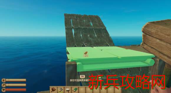 当我们要在一块侧板上建立再往内侧方向的侧板时如果想留暗格或者构造复杂造型时,也可以拍下木棒建造个平板然后向内侧方向建造侧板,当然也可以在侧板上直接拼接反方向侧板。这里注意的是在边角模块上就算建造了平板也做不出向内侧延伸的侧板。但有时又可以,大多情况下是不可以的,也许是BUG。灵活运用侧板 将给你爱船建造更多造型。造