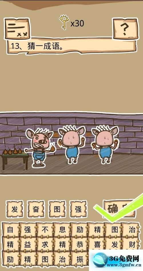 答案:点击发奋图强,然后点击确定就过关了。