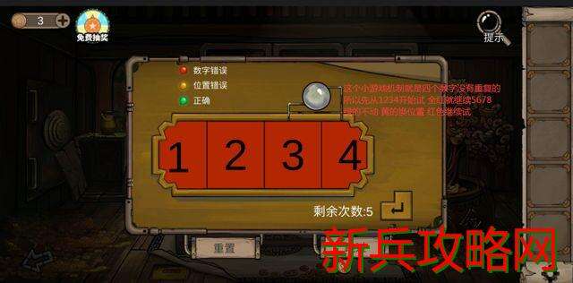 地上有个隐藏的箱子 放上二极管拿到扳手(说一下这个密码箱的小技巧四位数密码 每个数字应该都不是重复的 所以开始时候要先从1234开始试 碰到绿的就不动了 两个黄的换一下位置红色的继续试其它数字)