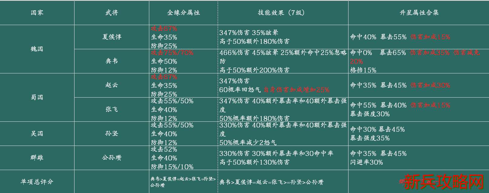 目前少年三国志2手游中最为出彩的一类武将,经常上演开局一杀2,残局1v5.是各大阵容的核心中的核心。别的先不说,我先附上一张数据表。