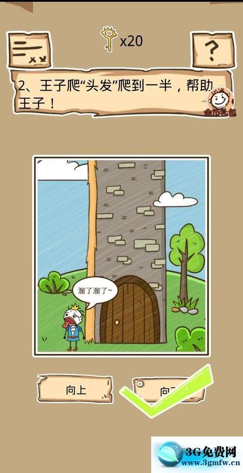 第2关先点击向上,看到公主后,点击向下直到过关为止。