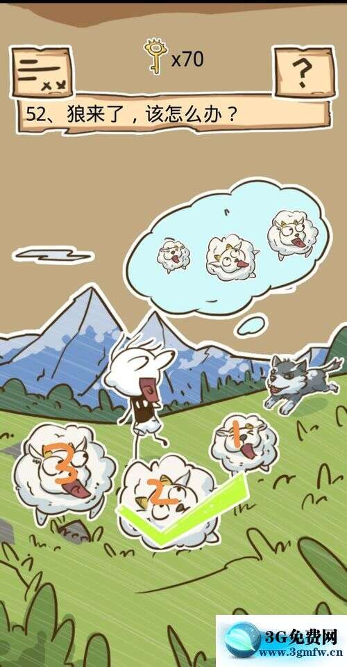 第58关手指按住房子向左拖动,看到羊就过关了。